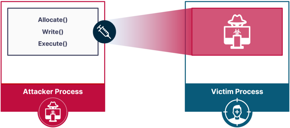 code under the guise of the legitimate process, bypassing security measures. The main goal is Execute malicious/payload code within a trusted process to, Evade Detection